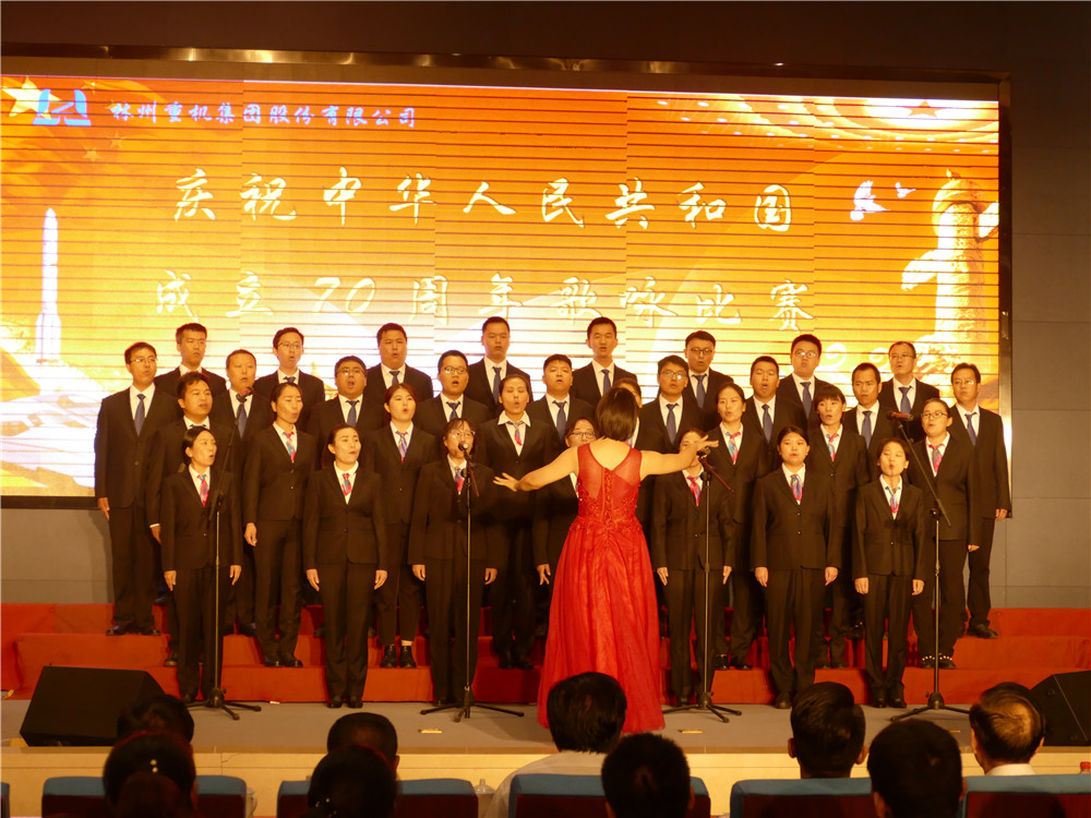 2019年9月29日下午2時,林州重機多功能廳內(nèi)燈光璀璨、紅旗招展。林州重機集團慶祝中華人民共和國成立70周年歌詠比賽在此隆重舉行。集團公司黨委書記、董事長郭現(xiàn)生,董事、總經(jīng)理郭釧等高管和十二支代表隊共400余人歡聚一堂,通過美好的歌聲,獻禮祖國的70華誕,獻禮奮進的新時代。