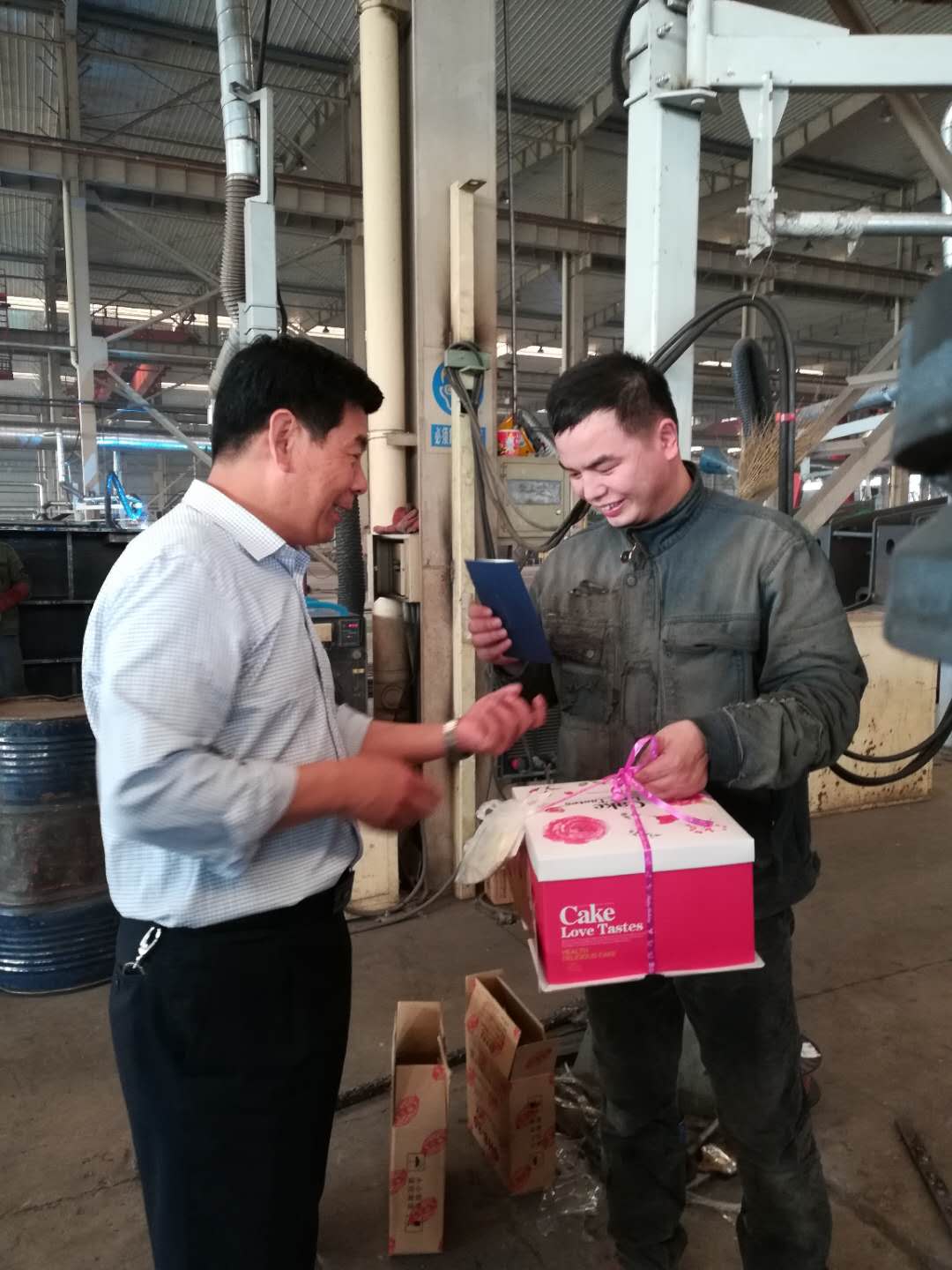 5月10日上午8時許,公司工會主席路建存攜帶生日蛋糕和生日賀卡走進車間,親自將生日禮物送到當天過生日的員工手中,并代表公司董事長、總經(jīng)理表示生日祝賀。當路主席把生日蛋糕送到員工手中時,他們感到非常驚訝,有的員工本人都不記得今天是自己生日,而公司把生日禮物送到了手中,員工們激動的說:非常感謝公司領(lǐng)導(dǎo)的關(guān)懷。