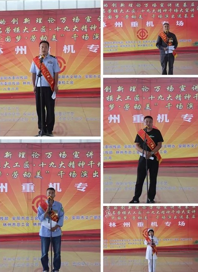 6月6日下午,安陽(yáng)市黨的創(chuàng)新理論萬(wàn)場(chǎng)宣講進(jìn)基層、百名勞模大工匠?十九大精神千場(chǎng)大宣講暨“中國(guó)夢(mèng) 勞動(dòng)美”千場(chǎng)演出送基層巡回演出活動(dòng)走進(jìn)林州重機(jī)。河南省委宣傳部副部長(zhǎng)尹書(shū)博,省委宣傳部理論處副處長(zhǎng)楊小強(qiáng),省委宣傳部理論教育講師團(tuán)副團(tuán)長(zhǎng)趙琳,安陽(yáng)市委宣傳部副部長(zhǎng)冀曉東,安陽(yáng)市委宣傳部理論科長(zhǎng)龍晨曦,安陽(yáng)市總工會(huì)宣教部部長(zhǎng)張艾敏,林州市委常委、宣傳部長(zhǎng)王獻(xiàn)青,林州市總工會(huì)主席栗旺生,副主席張曉云, 公司黨委副書(shū)記、副總經(jīng)理趙正斌,黨委委員、工會(huì)主席路建存及職工代表300余人等出席活動(dòng)。