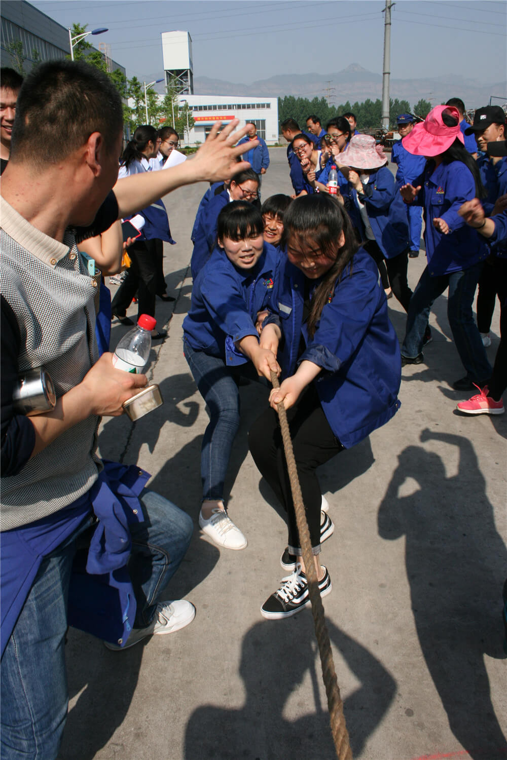 開幕式結束后,籃球、短跑、接力、拔河、跳繩、踢毽、乒乓球、羽毛球、象棋等13個項目在指定的比賽場地同時舉行。籃球場上身穿藍球衣朗坤公司隊和紅色球衣生產系統隊的比賽精彩紛呈,扣人心弦。隨著"砰"一聲,發令槍響,接力運動員疾步如飛,向終點沖刺。觀眾“加油、加油”的助威吶喊聲,將拔河比賽推向高潮。
